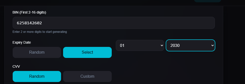 Click here use : 6258142602xxxxxx (BIN), Change day to 01 and month to 30